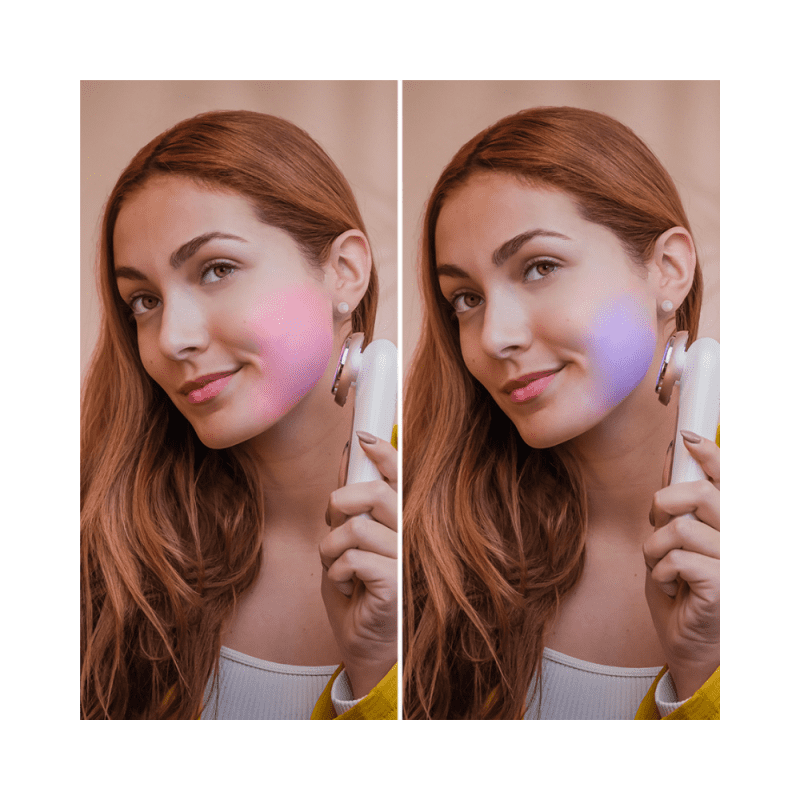 – Tehnologija svetlobne terapije: Uporablja tri različne valovne dolžine svetlobe (rdeča, modra in zelena), ki pomagajo pri različnih kožnih težavah, kot so akne, staranje kože in pigmentacija.