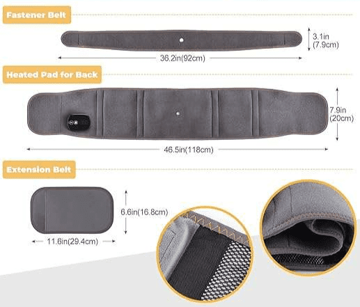 shumee Električni grelni pas s 3 načini vibracij, nastavljiv, 5000 mAh, siv