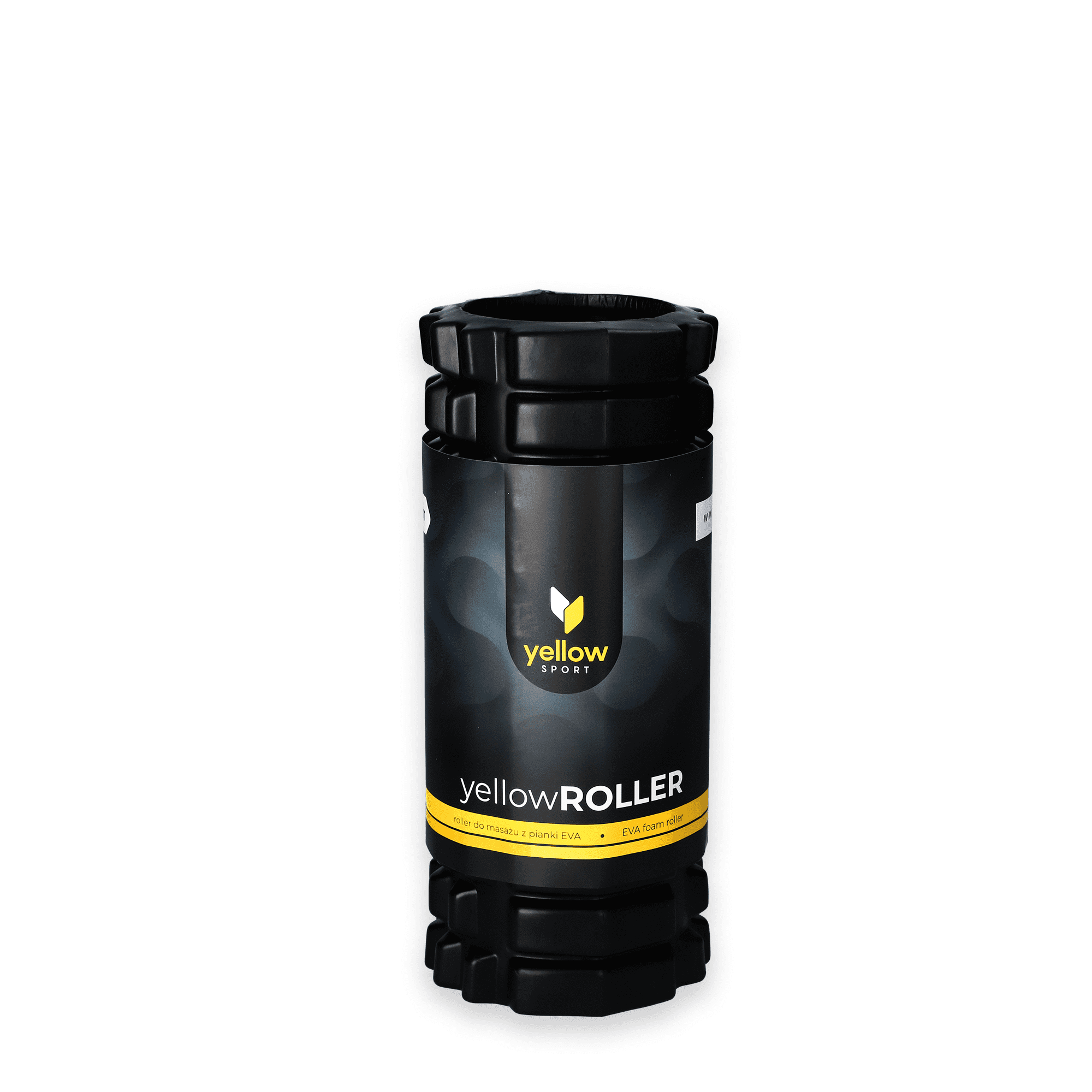 Valjček, masažni valjček rumene barve, EVA material, črn Celoten opis