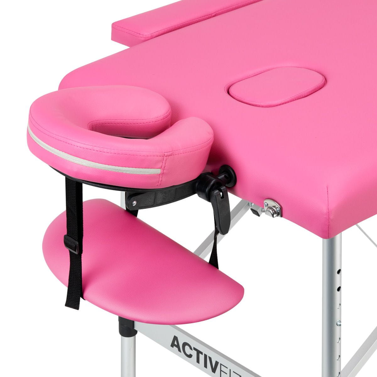 Zložljiva aluminijasta masažna miza Activ Fizjo Komfort je dvosegmentni model z oblazinjenjem v odtenkih roza, ki bo odlična za masažni salon ali fizioterapevta , pa tudi za številne druge specializirane ordinacije Izdelek ne zavzame veliko prostora , zaradi možnosti hitrega in enostavnega zlaganja, relativno lahke strukture in priložene torbe pa je odlična izbira tudi za mobilne storitve