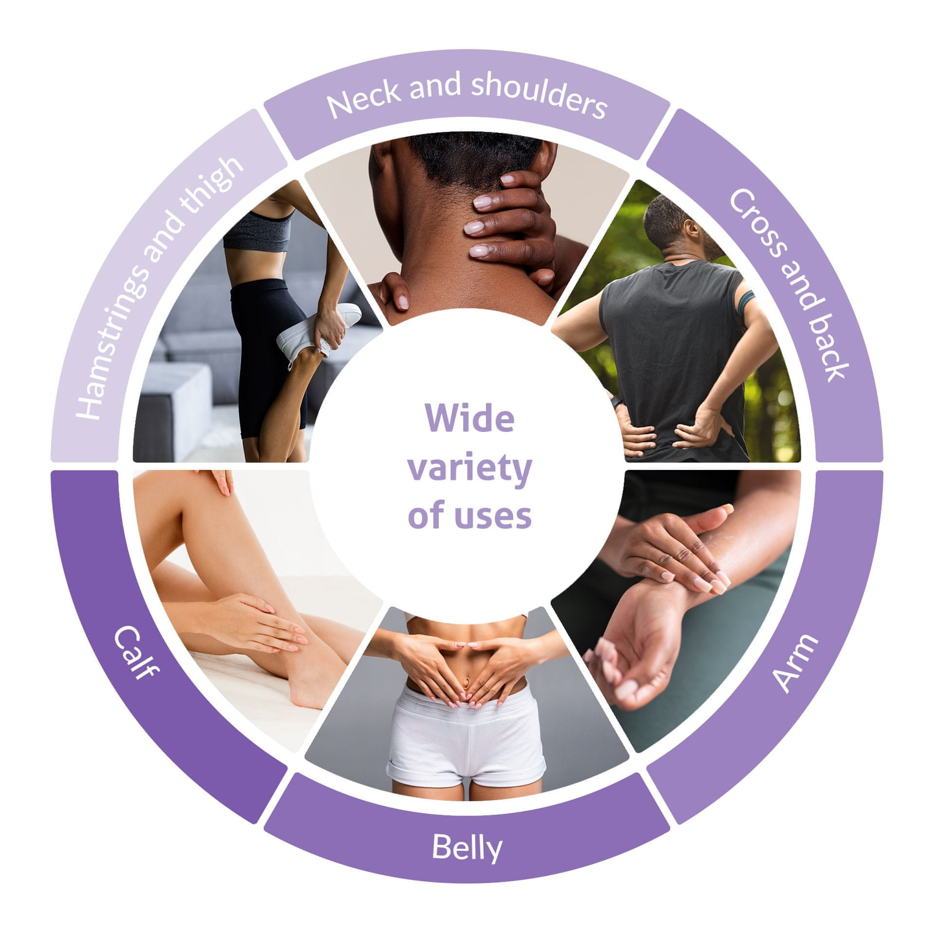 - Za masažo vratu, križa, hrbta, stegen, meč in stopal.