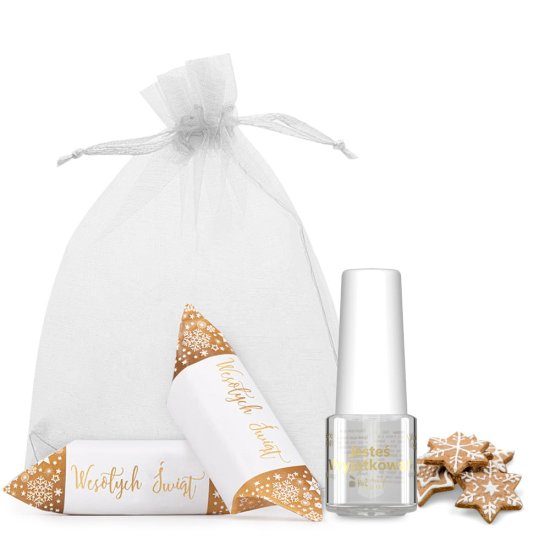 Olje za obnohtno kožico in nohte z vonjem medenjakov in karamele v okrasni vrečki 5 ml Celoten opis