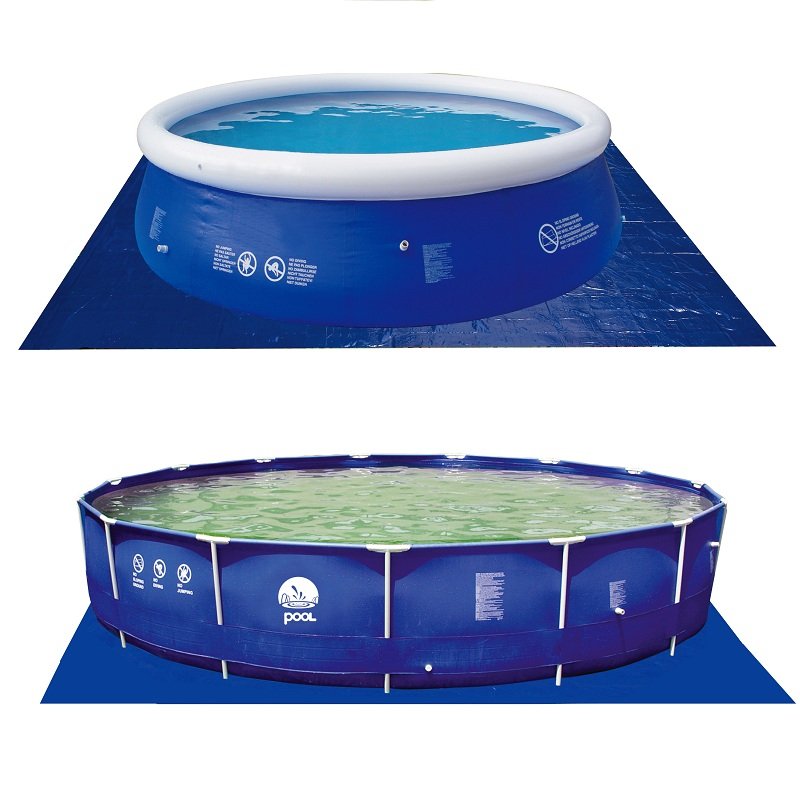 Podloga za bazen 440 × 440 cm – Podaljšajte življenjsko dobo svojega bazena in ga zaščitite pred luknjami, razpokami in umazanijo. Ta trpežna podloga je idealna za zaščito vašega domačega bazena pred poškodbami, ki jih povzročijo ostre skale in druge neravne površine. Voda, ki med plavanjem teče čez rob bazena, se zbira na ponjavi, namesto da bi se vpijala v tla. To preprečuje, da bi površina postala premehka in blatna. Ko je zložena, podloga zavzame malo prostora in jo je enostavno shraniti, ko bazen ni v uporabi.
