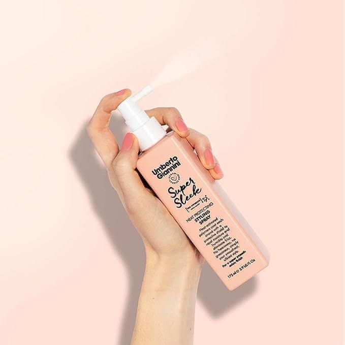 Zaščitni sprej Umberto Giannini. Toplotno zaščitno pršilo za oblikovanje, ki ne le preprečuje poškodbe pri oblikovanju, ampak poskrbi tudi za neverjetno gladke in elegantne lase z lesketajočim sijajem! Formula proti vlagi preprečuje kodranje las in zadržuje vlago, zato ste videti elegantni ne glede na vreme. Varno za barvane, kemično obdelane, sproščene in podaljšane lase. Kako uporabiti: Pred uporabo dobro pretresite. Pred feniranjem poškropite na z brisačo osušene lase od korenin do konic. Zaključite z likalniki za še bolj eleganten videz. Namig profesionalnega stilista: Sušenje z okroglo krtačo za ustvarjanje napetosti ustvari neverjeten, steklen sijaj. Če to ni dovolj, lahko uporabite likalnike za še bolj eleganten videz. Kapaciteta: 175 ml