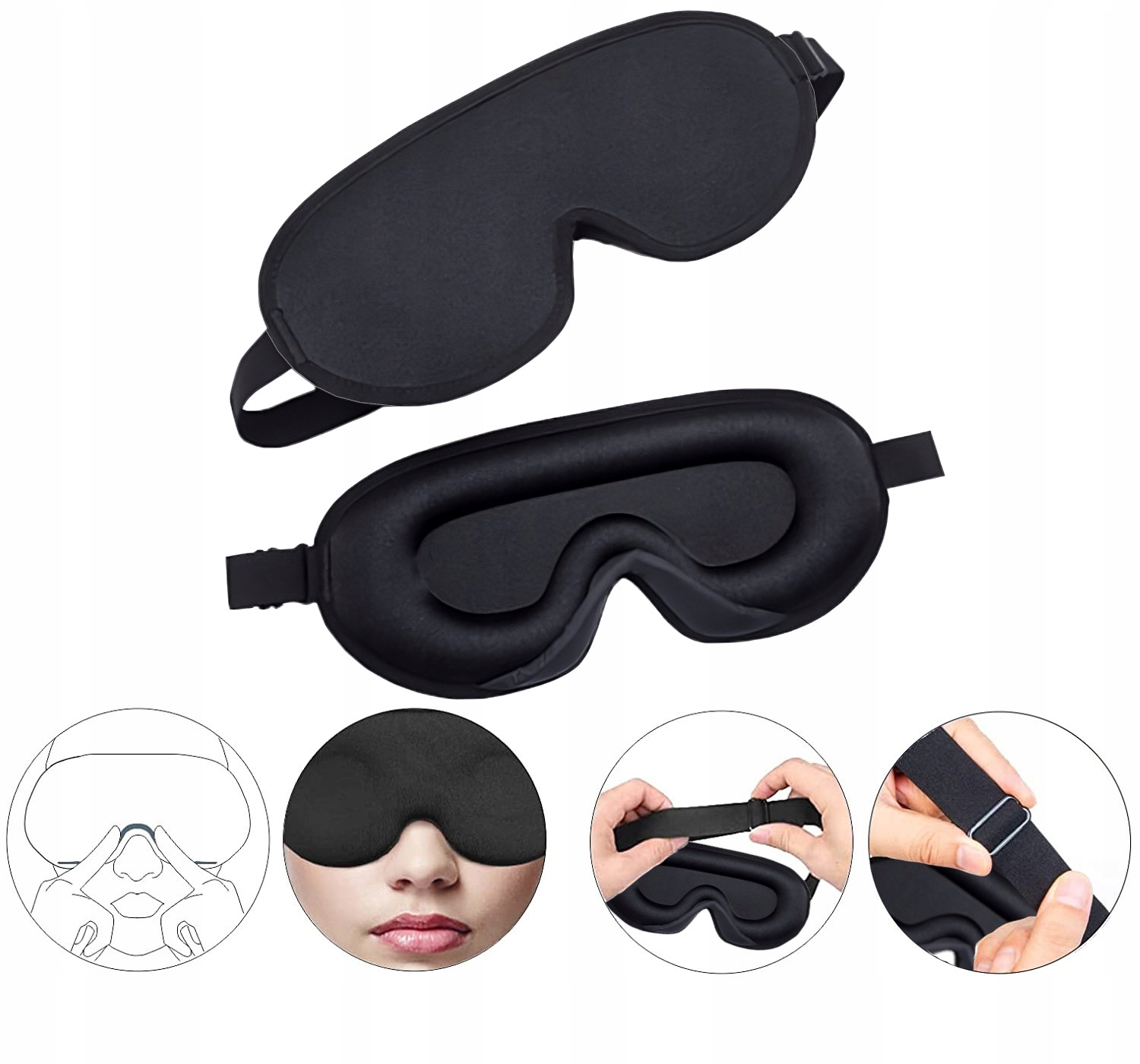 Udobje in priročnost: Maska s črno, elegantno obliko ima debelo, mehko gobo za optimalno udobje med spanjem.