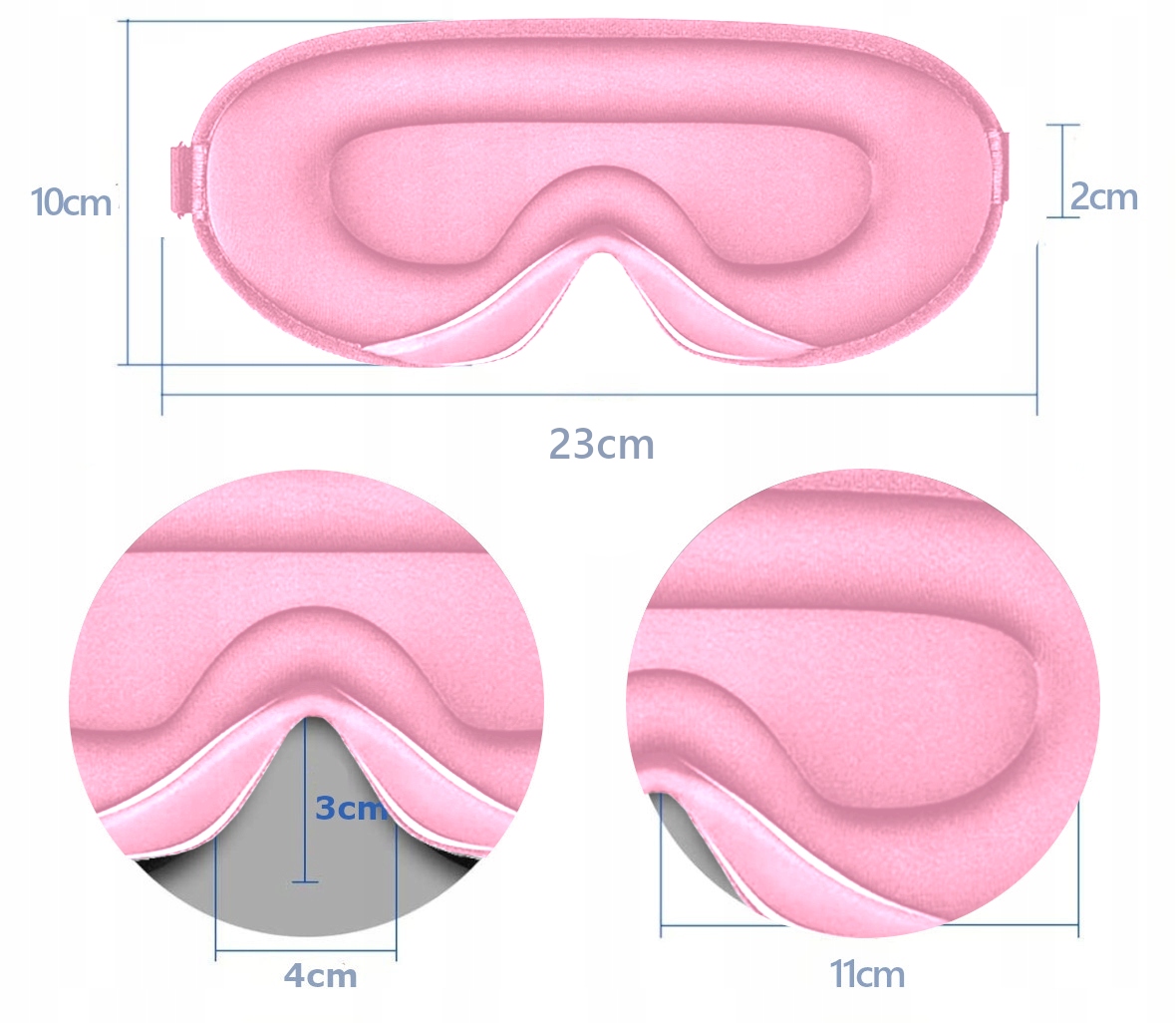 Mehka, zračna tkanina ne pritiska na veke in ne povzroča draženja – prostorska 3D-oblika pa pomeni, da lahko pomežiknete, ne da bi pri tem občutili nelagodje. Vaše oči se resnično spočijo.