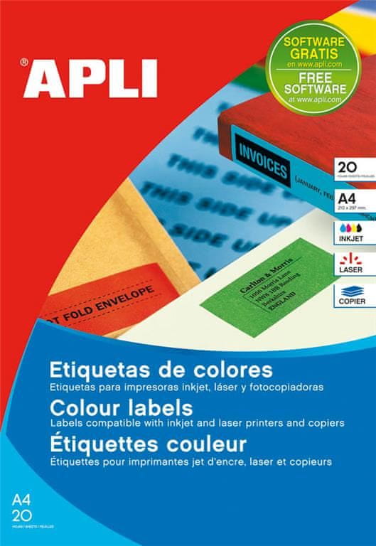 Apli Barvne nalepke, fluo.zelene 210 x 297 mm 1/stran, 20 listov