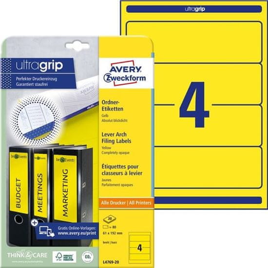 Avery Zweckform Nalepke za rumene barve, 192x61mm, 80 kosov