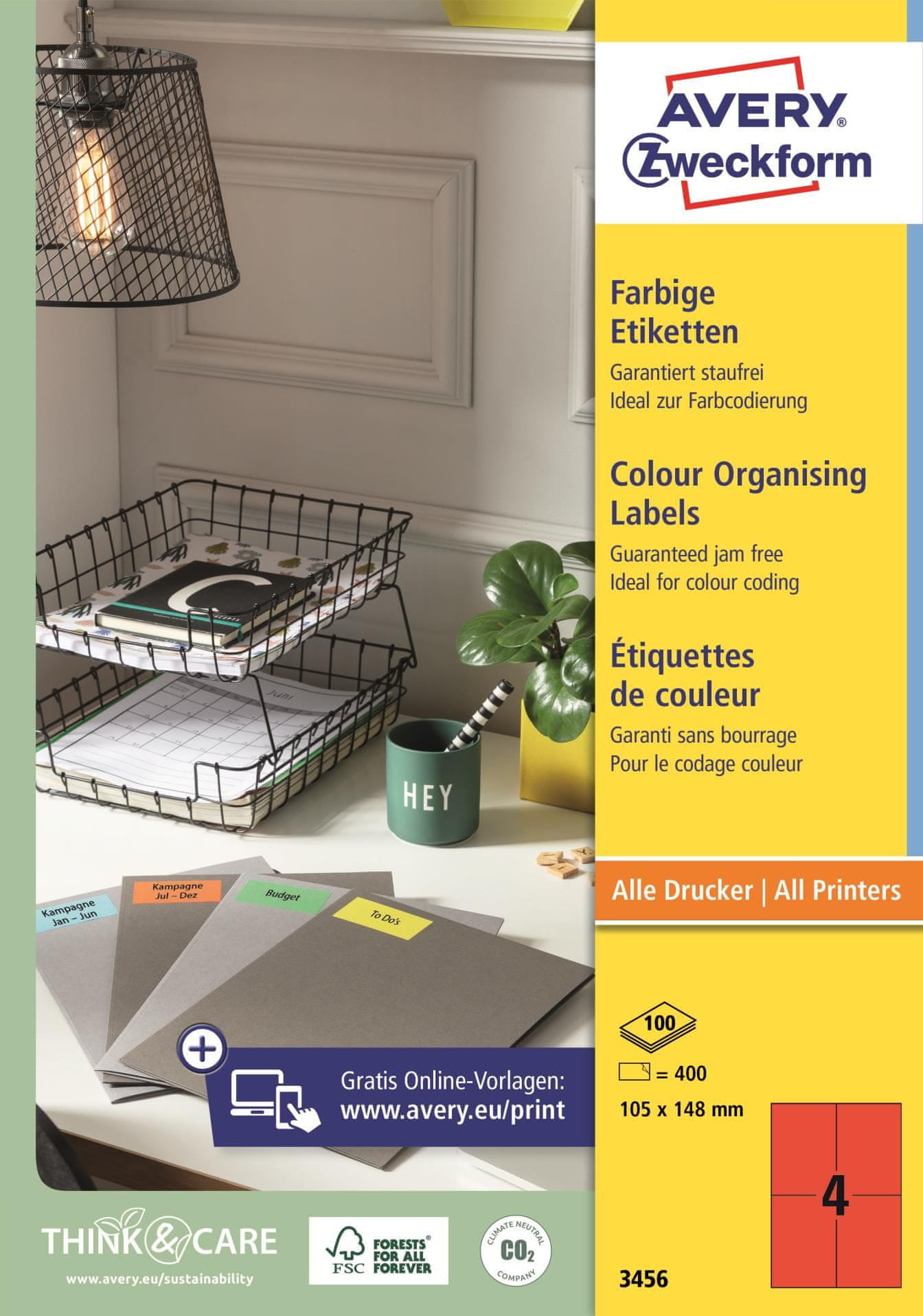 Avery Zweckform Univerzalne etikete Avery, 105 x 148 mm, rdeče