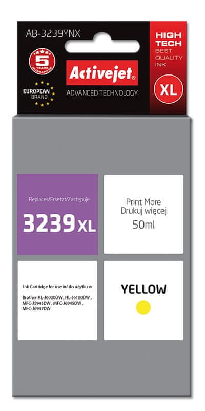 Effiki activejet ab-3239ynx črnilo (nadomestno črnilo za brother lc3239xly; supreme; 50 ml; rumeno)