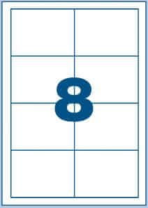 Izredno kakovostne samolepilne nalepke. Primerne za tiskanje z laserskimi ali brizgalnimi tiskalniki ter za fotokopirne stroje. Na polah velikosti A4. 100 listov v paketu. 8 nalepk na strani. Celoten opis