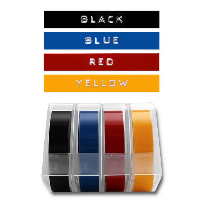 shumee Komplet 4 3D trakov Qoltec za DYMO Omega Embosser | 9 mm * 3 m | 4 barve | samolepilni