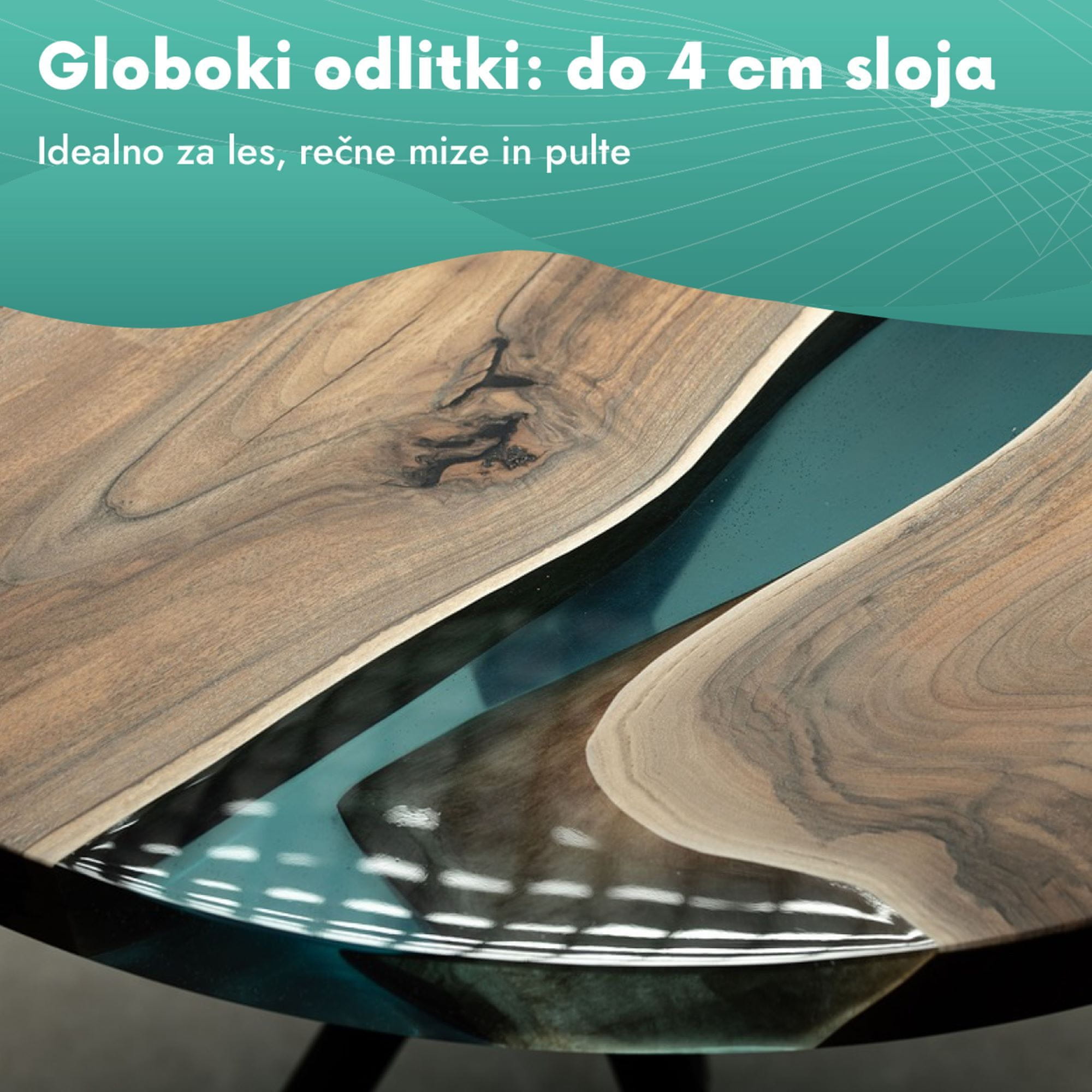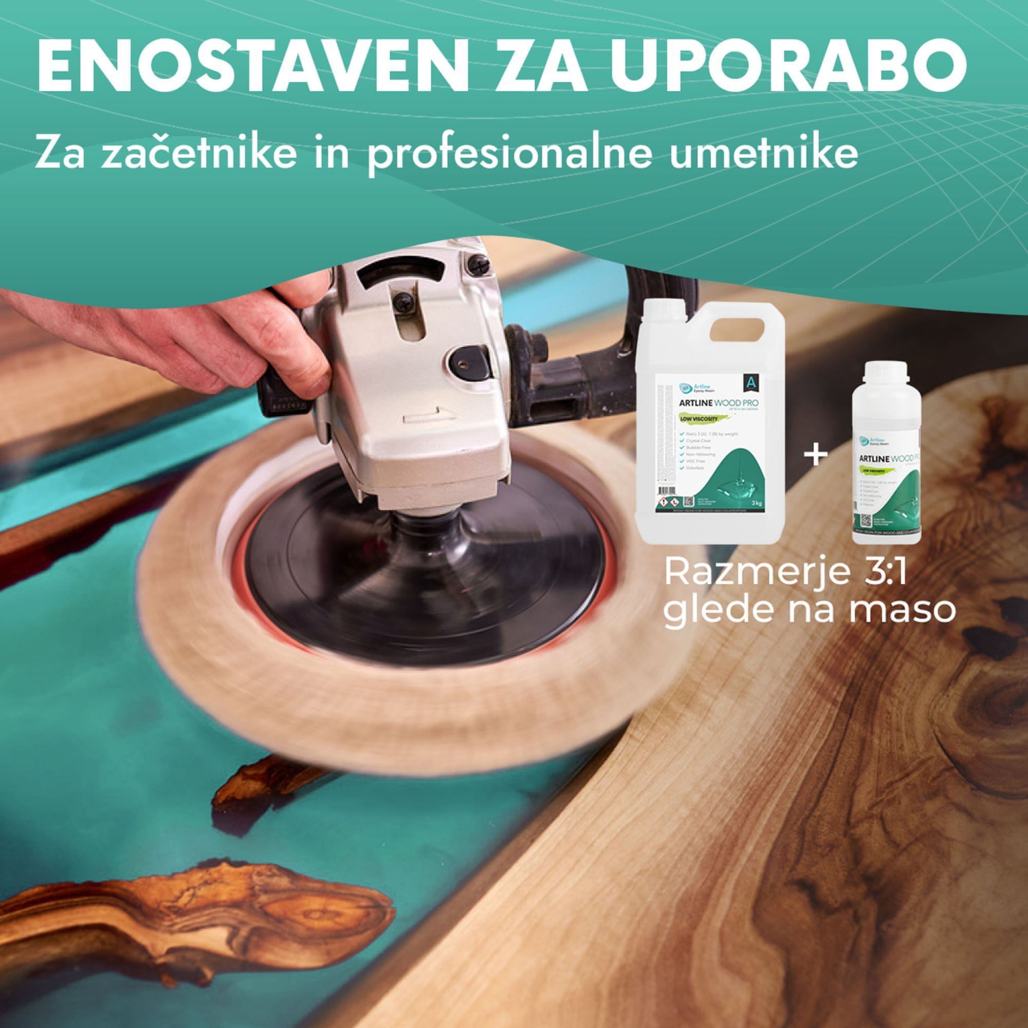 Epoksi smola Artline Wood PRO, 4 kg. Ta smola je idealna tudi za najtrše površine. Ne glede na to, ali gre za barski pult ali rečno mizo, bo epoksi smola Wood PRO poskrbela, da bo vaš les videti kristalno čist.