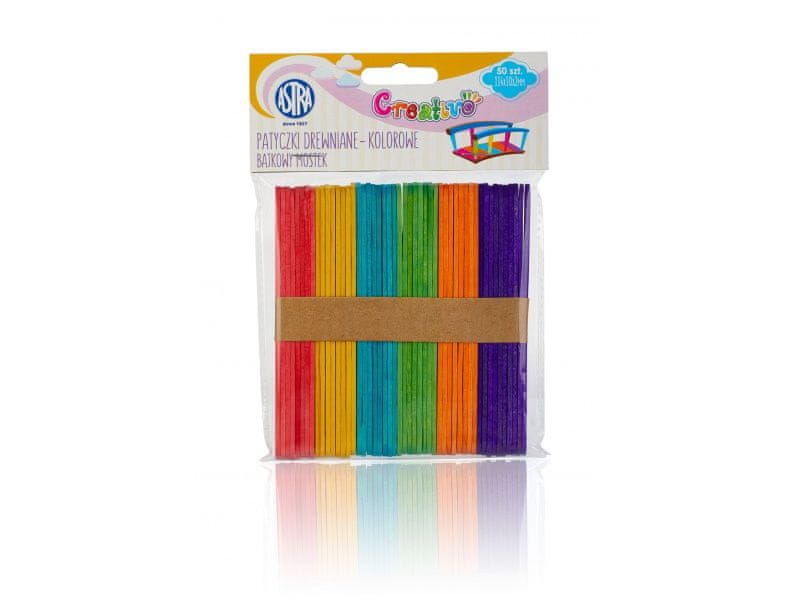 Astra CREATIVO Lesene lopatice (palčke za popsicle), 11,4 cm, barvne, 50 kosov, 335119022