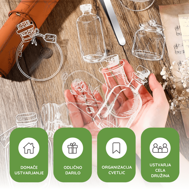 Spremenite cvetje v brezčasno dekoracijo! Preprosto odlepite, prilepite in ustvarite čudovite cvetlične zaznamke ali personalizirana darila! Spodbudite ustvarjanje, učenje o rastlinah in skupaj ustvarite nepozabne spomine. Primerno za cvetje ali liste. Paket vsebuje: 40 kosov, 10 različnih modelov. Celoten opis