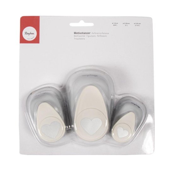 Set luknjačev, Srčki, set 3 Dimenzije izrezov: 1,6cm+2,54cm+3,81cm Luknjači so primerni za rezanje papirja do debeline 220gsm. Nasvet: Luknjač nabrusite tako, da namesto papirja med rezila položite tanko aluminijasto folijo. Celoten opis
