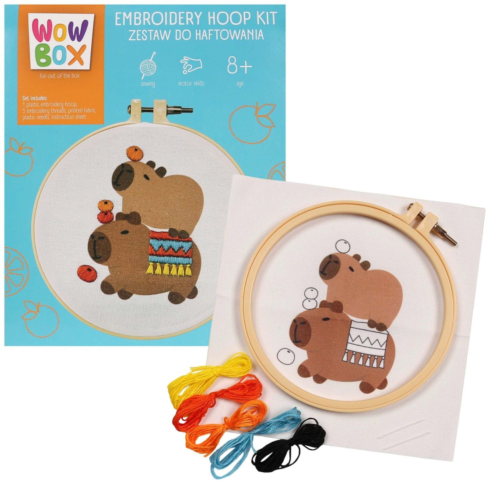 sarcia.eu Wow Box - Veseli KAPIBARI Komplet za vezenje, ustvarjalni komplet z vezenim obročem 8+