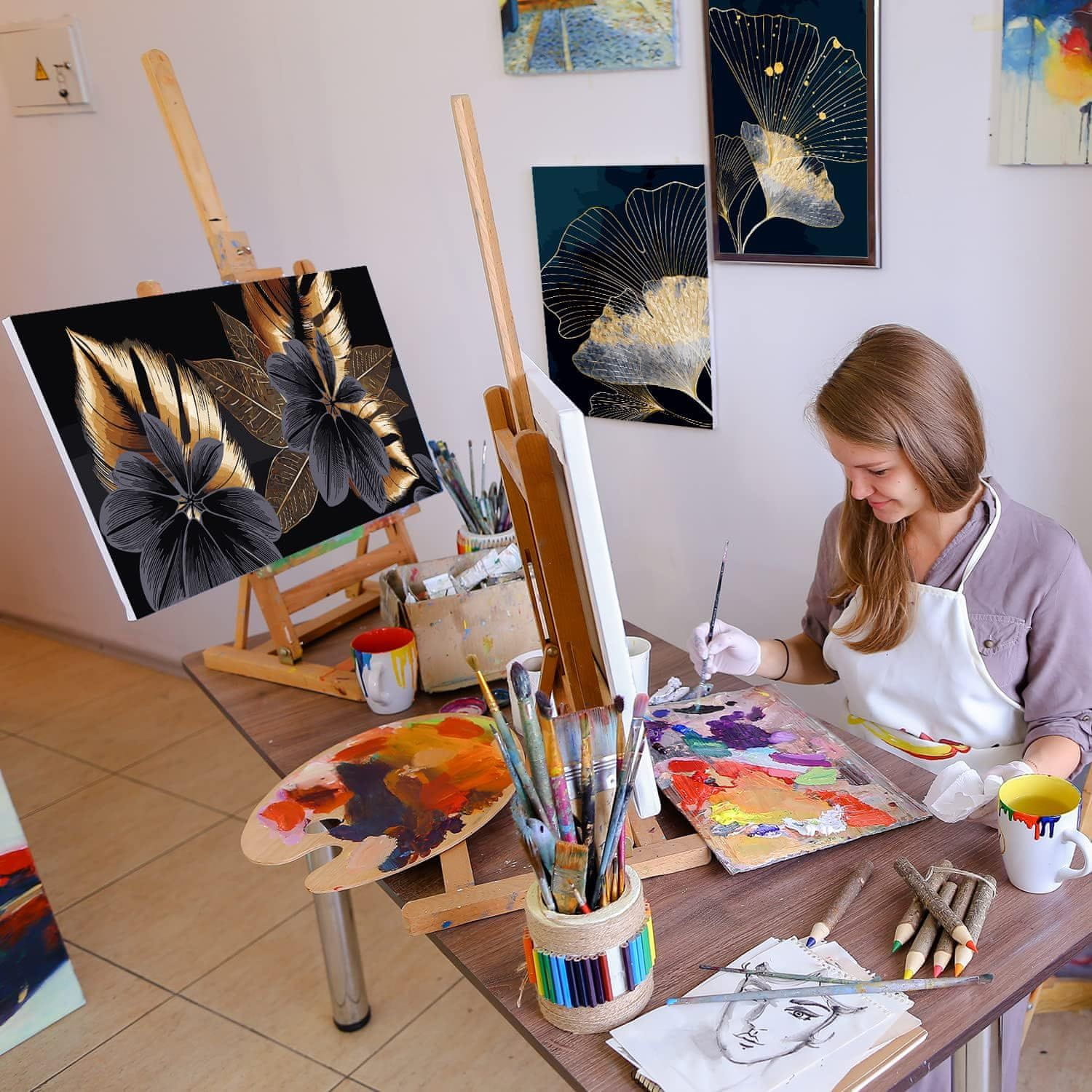 - Visokokakovostni materiali: Odporni proti gubam, z visokokakovostnimi čopiči in akrilnimi barvami.
