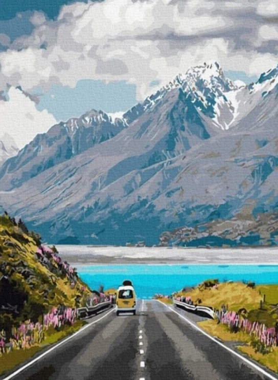 shumee Komplet umetniških slik za slikanje po številkah cesta v gorah 40×50 cm