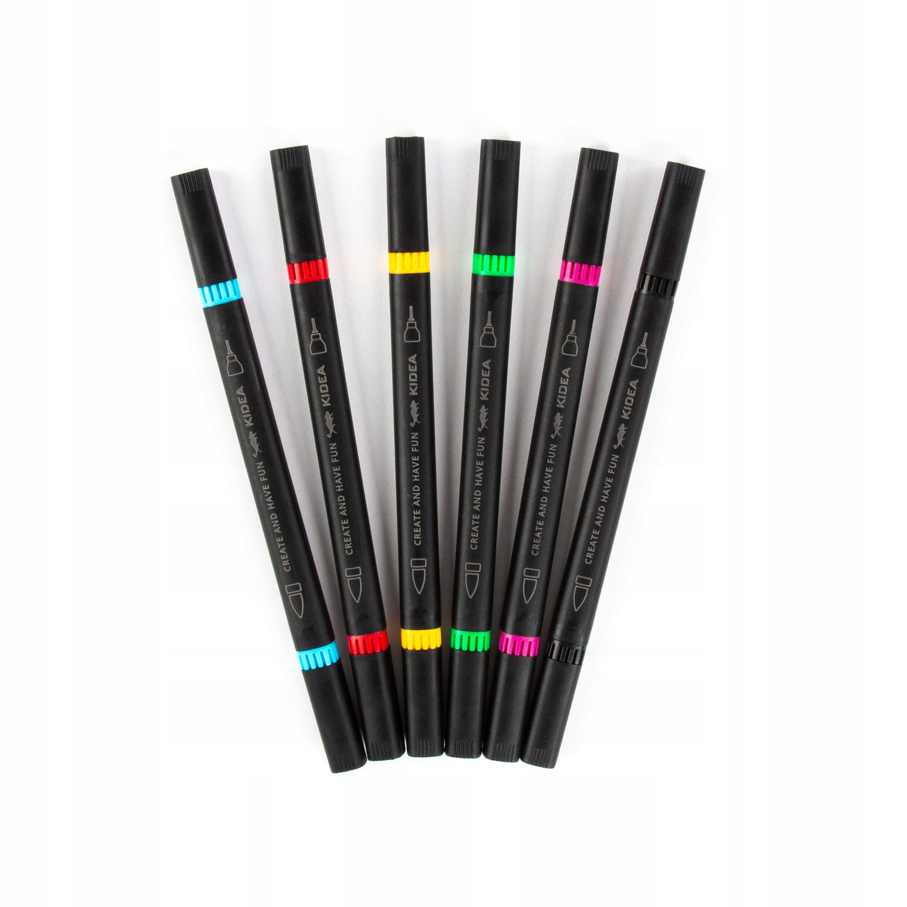 Dvostranski umetniški markerji v 6 živih barvah: črni, rdeči, zeleni, rumeni, modri in roza.