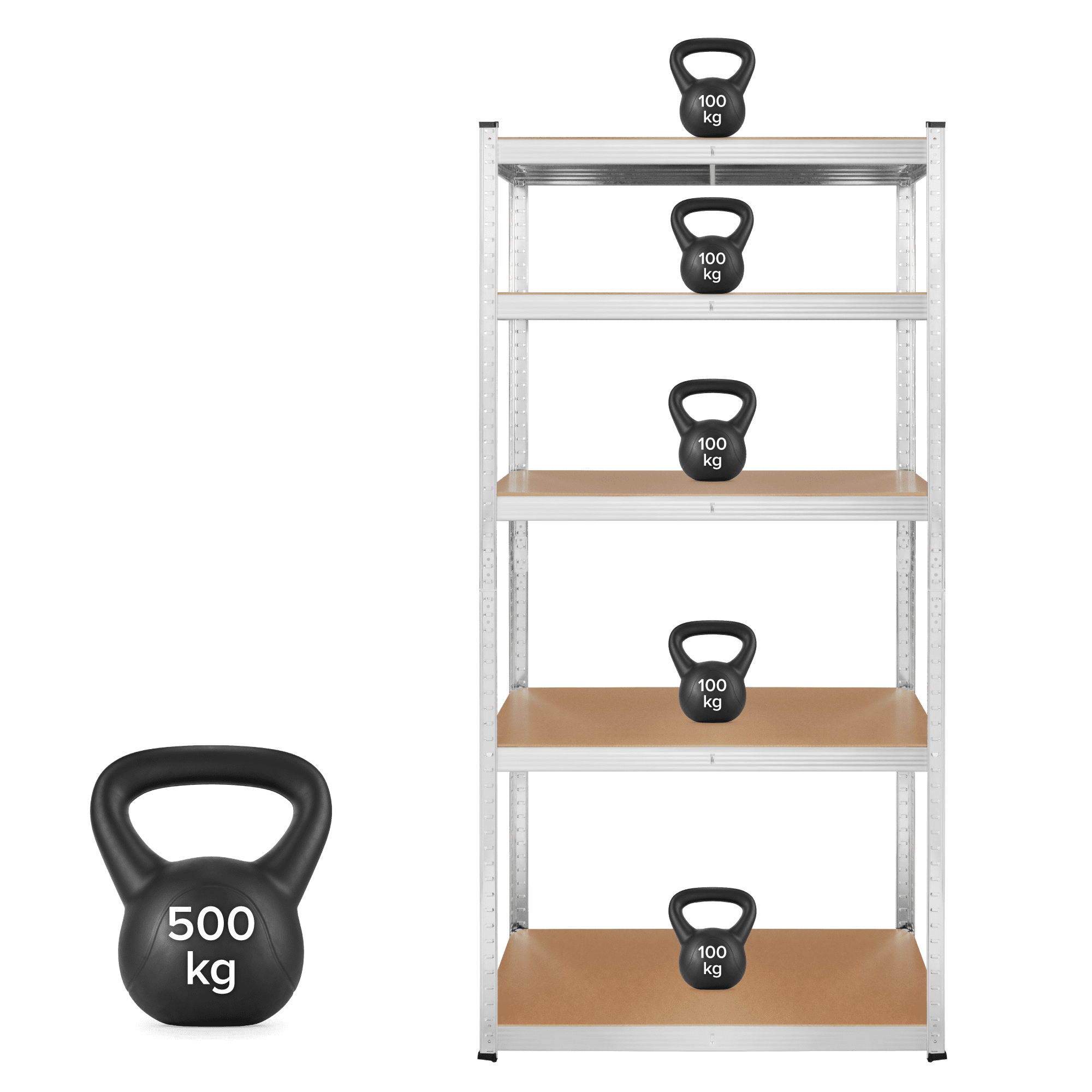 Sistem delavniških polic Rebel Tools je zaradi svoje trdne pocinkane jeklene konstrukcije primeren za shranjevanje lahkih in težkih predmetov. Opremljen je s 5 močnimi policami, od katerih vsaka lahko prenese obremenitev 100 kg. Da bi zmanjšali tveganje za poškodbe polic, težo enakomerno porazdelite po policah.