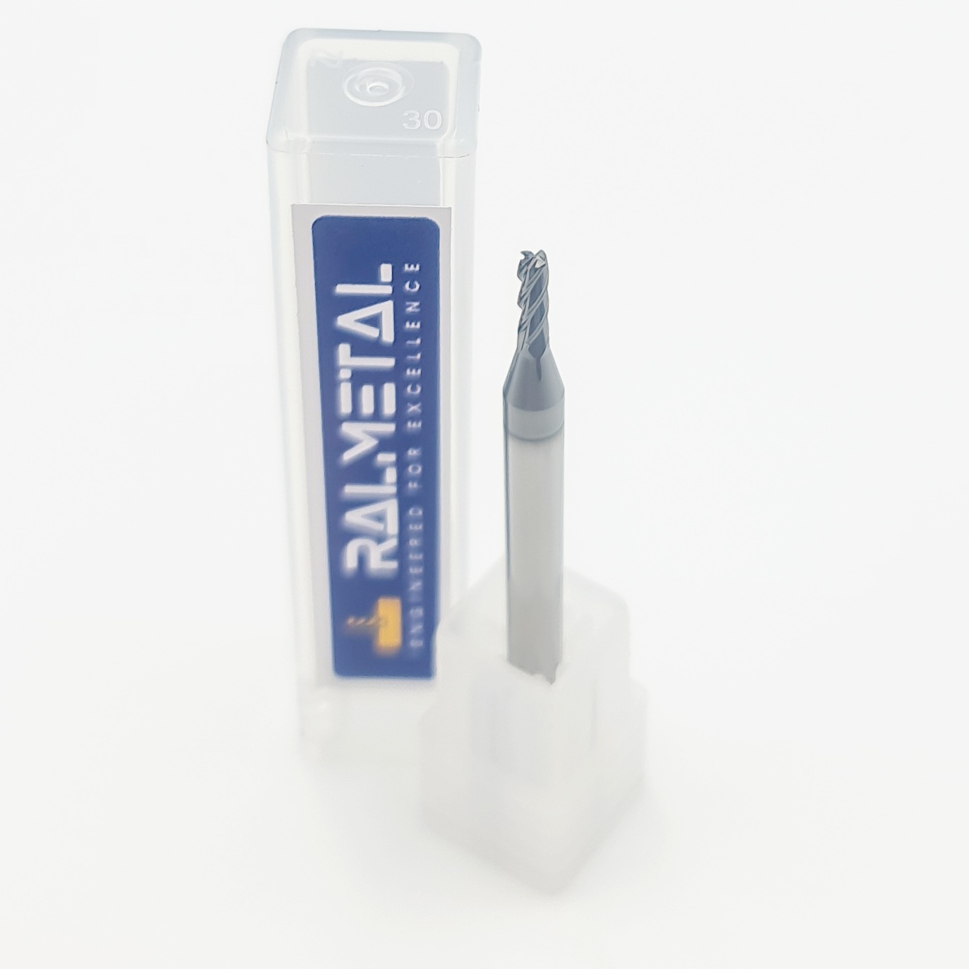 Rezkar za radius iz karbidne trdine VHM, 4 rezila / 4 rezila. Fi. 3 mm R – 0,5 mm – 45 HRC za fino obdelavo jekla.