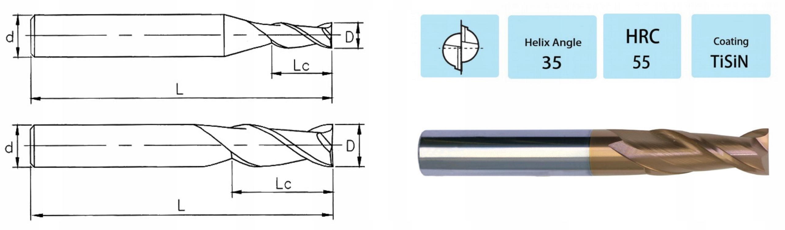 Rezalo iz karbidne trdine VHM 2 rezila / 2 rezila. Fi. 2 mm 55 HRC – za fino obdelavo jekla.