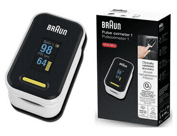 Braun YK81CEU pulzni oksimeter izmeri vsebnost kisika v krvi. Po vstavitvi prsta v svetlobno-električni senzor se na zaslonu prikažeta izmerjena nasičenost s kisikom (SpO2) in frekvenca pulza, ter navpični stolpčni graf. Oksimeter je praktičen pripomoček, primeren za spremljanje zdravja in za ljudi z dihalnimi težavami, srčno-žilnimi težavami, športniki itd.