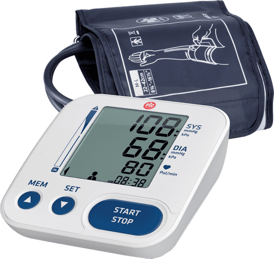 Pic LiteRapid merilnik krvnega tlaka, od 22 do 42 cm, ima 2 × 60 spominskih mest in omogoča izpis povprečja zadnjih treh opravljenih meritev.