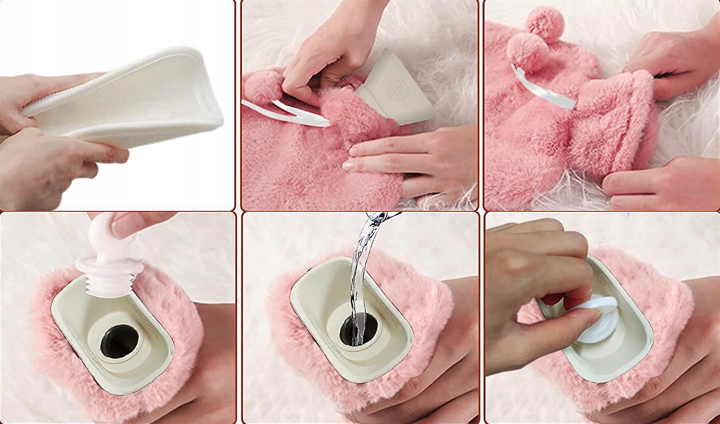 zatesnilnim, navojnim pokrovčkom. Prekrit z mehkim, prijetnim krznom na dotik. Prevleko je mogoče enostavno odstraniti s termoforja. Uporaba takšnega termoforja