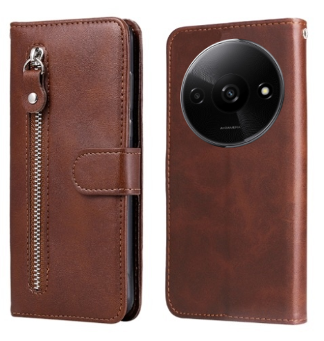 Ovitek denarnica z zadrgo za Xiaomi Redmi A3 rjava Celoten opis