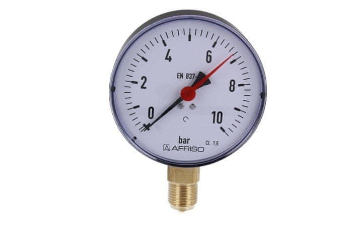 shumee Standardni manometer RF 100 D 201, premer 100 mm, 0–10 barov, 1/2 palčni rad, razred 1,6, vertikalni kovinski