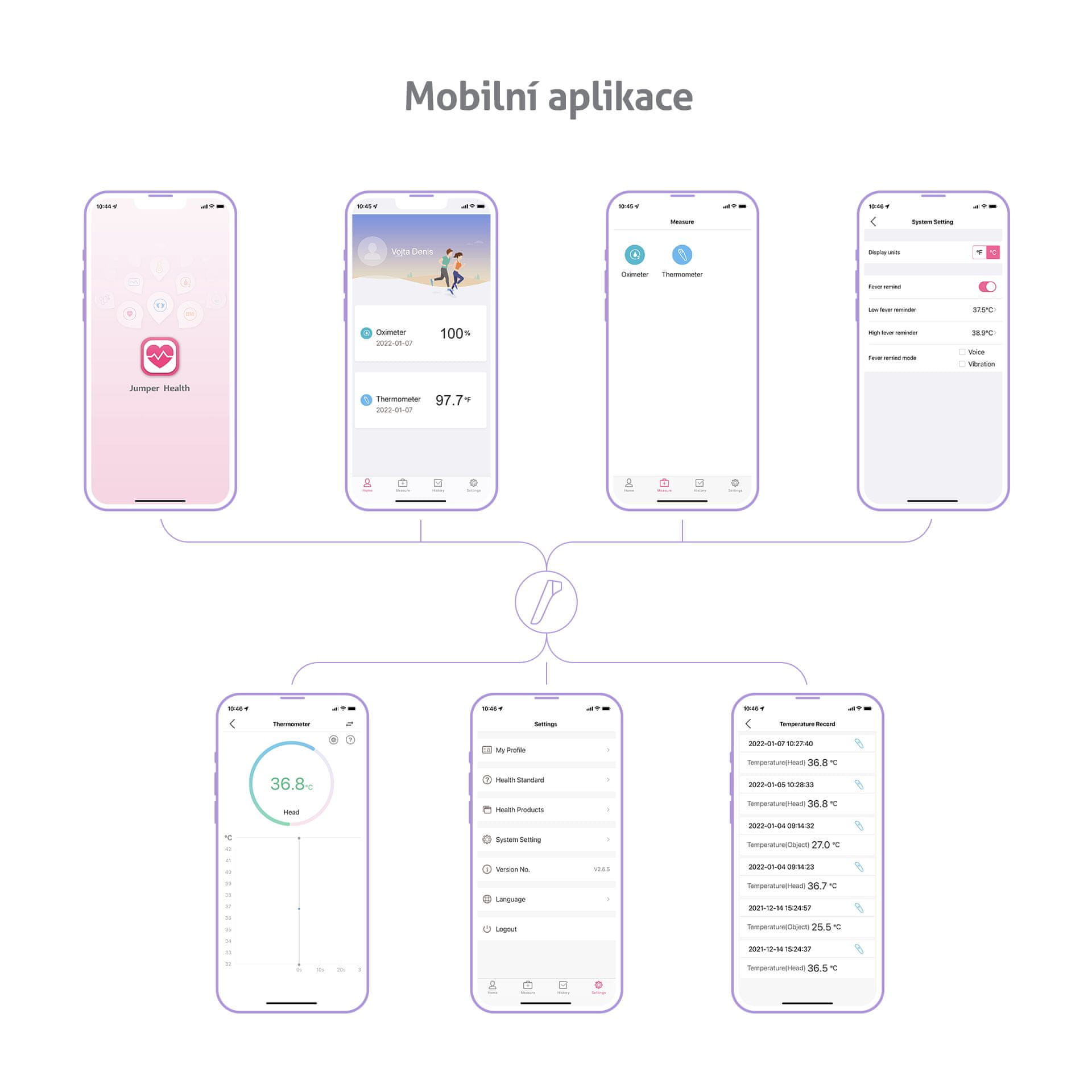 Termometer TrueLife Care Q10 BT lahko preprosto povežete s pametnim telefonom prek povezave Bluetooth in mobilne aplikacije. Izmerjene vrednosti so shranjene v aplikaciji, ki je v češčini, zato imate lahko njihovo zgodovino vedno pri sebi in jo delite z zdravnikom ali družino. Razvoj meritev v aplikaciji si lahko ogledate na preglednem grafu.