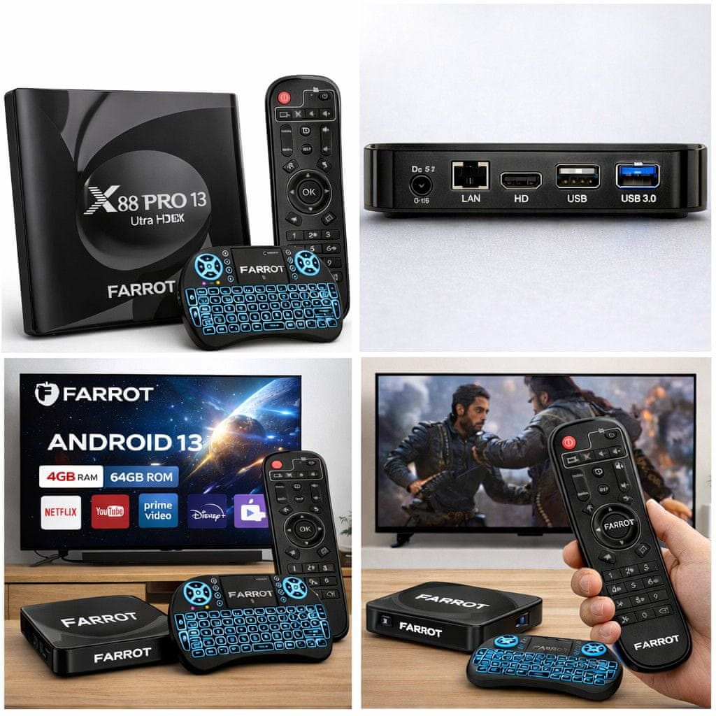 🔥 FARROT Smart TV Box Android 13 – 8K Ultra HD | WiFi 6 | Bluetooth 5.0 | Mini tipkovnica GRATIS