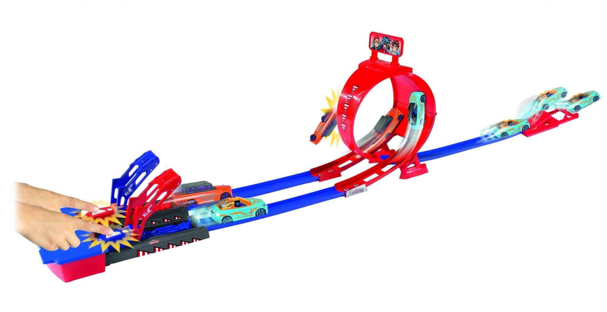 Zgradite svojo sanjsko progo dolžine 350 cm s 360-stopinjskimi zankami, obrati in različnimi odseki! Uživajte v dinamični igri z barvnimi lučkami, navpičnimi vzponi in spusti, ki bodo obogatili doživetje. Enostavno sestavljanje in razstavljanje omogoča neskončne možnosti igranja.