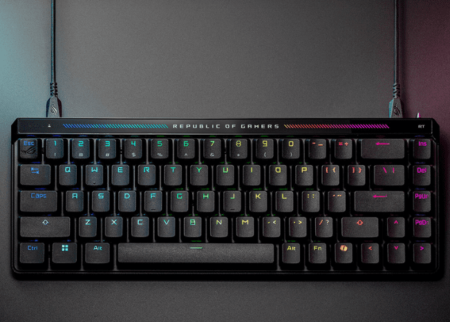 Tipkovnica ima na zadnjem robu dva USB-C vhoda na obeh straneh, kar omogoča bolj urejeno postavitev. Uporabniki lahko istočasno povežejo do dva računalnika in hitro preklapljajo med njima. Z Aura Sync RGB pa imate na voljo celoten barvni spekter in vrsto dinamičnih svetlobnih učinkov.