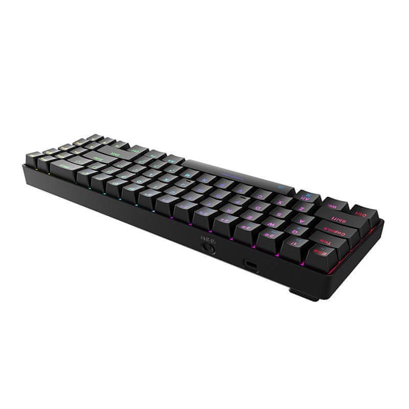 Z magnetnimi nogicami, ki se obračajo za 90°, lahko tipkovnico dvignete za 3,5 mm. Sila, ki je potrebna za aktiviranje rdečih stikal, je le 45 g, točka aktiviranja pa je oddaljena 2 mm. Osvetlitev gumba Esc pa vam bo zagotovila informacije o stanju tipk. Tipke z lasersko gravuro so izdelane iz PBT in so odporne na obrabo in obrabo. Tipkovnica je tudi izjemno kompaktna – na vaši mizi ne bo zavzela veliko prostora.