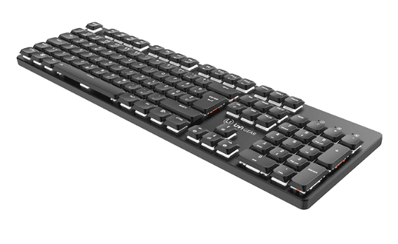 UVI LEAF Wireless brezžična tipkovnica ima tiha, nizkoprofilna rdeča stikala Outemu, zasnovana za udobno in prijetno pisarniško delo ali igranje iger. Njena posebnost je bela LED osvetlitev, z 18 različnimi načini delovanja. Prav tako ima prilagodljivi nogici, ki omogočata prilagoditev višine.