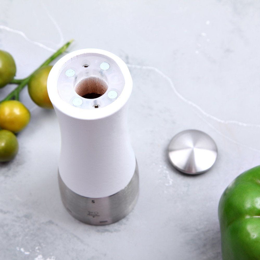 PEUGEOT MLINČEK ZA SOL MADRAS je izredno priročen pripomoček z ergonomsko obliko. Mlinček iz bukovega lesa je polakiran z belo barvo, eleganco pa mu dajejo še detajli iz brušenega nerjavečega jekla.