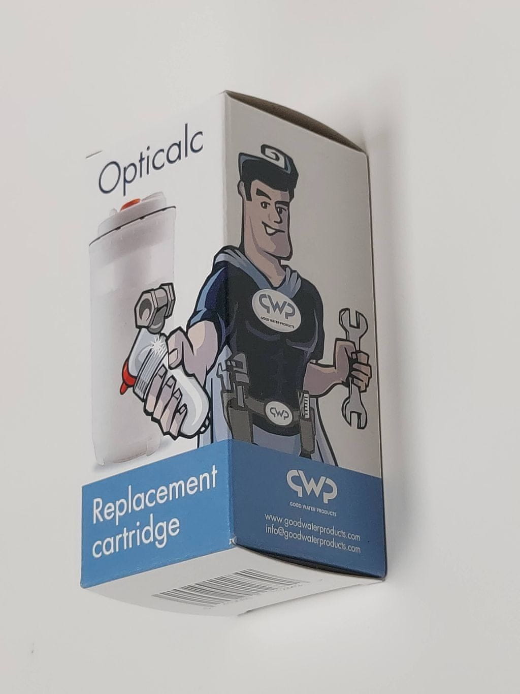 OPTICALC odstranjuje vodni kamen s pomočjo inhibitorskega delovanja polifosfatnih mineralov. Dozirni sistem v kartuši Opticalc omogoča, da se v vodo doda natančen odmerek polifosfata, v povprečju 3 mg/l. Edinstvena posebnost sistema OPTICALC je tudi zvočno opozorilo, ko je vsebina vložka porabljena. Celoten opis