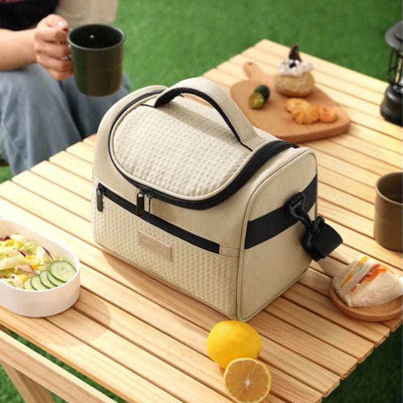 Torba je tudi odličen pripomoček za mame – enostavno jo lahko pospravite v voziček ali vzamete s seboj na pot. Notranji prostor sprejme otroške stekleničke, majhne obroke ali prigrizke. Udobni ročaji omogočajo enostavno nošenje, varna zadrga pa ščiti vsebino pred razlitjem ali umazanijo.