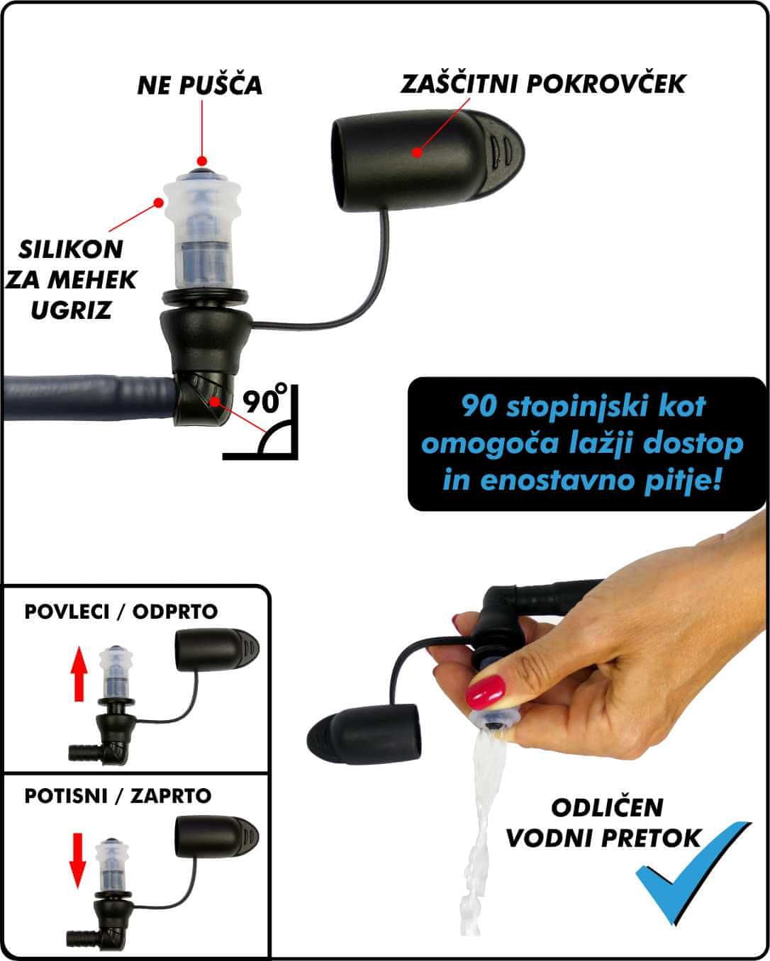 - mehek ustnik za pitje z zaščitnim pokrovčkom in vleci-potisni delovanjem.