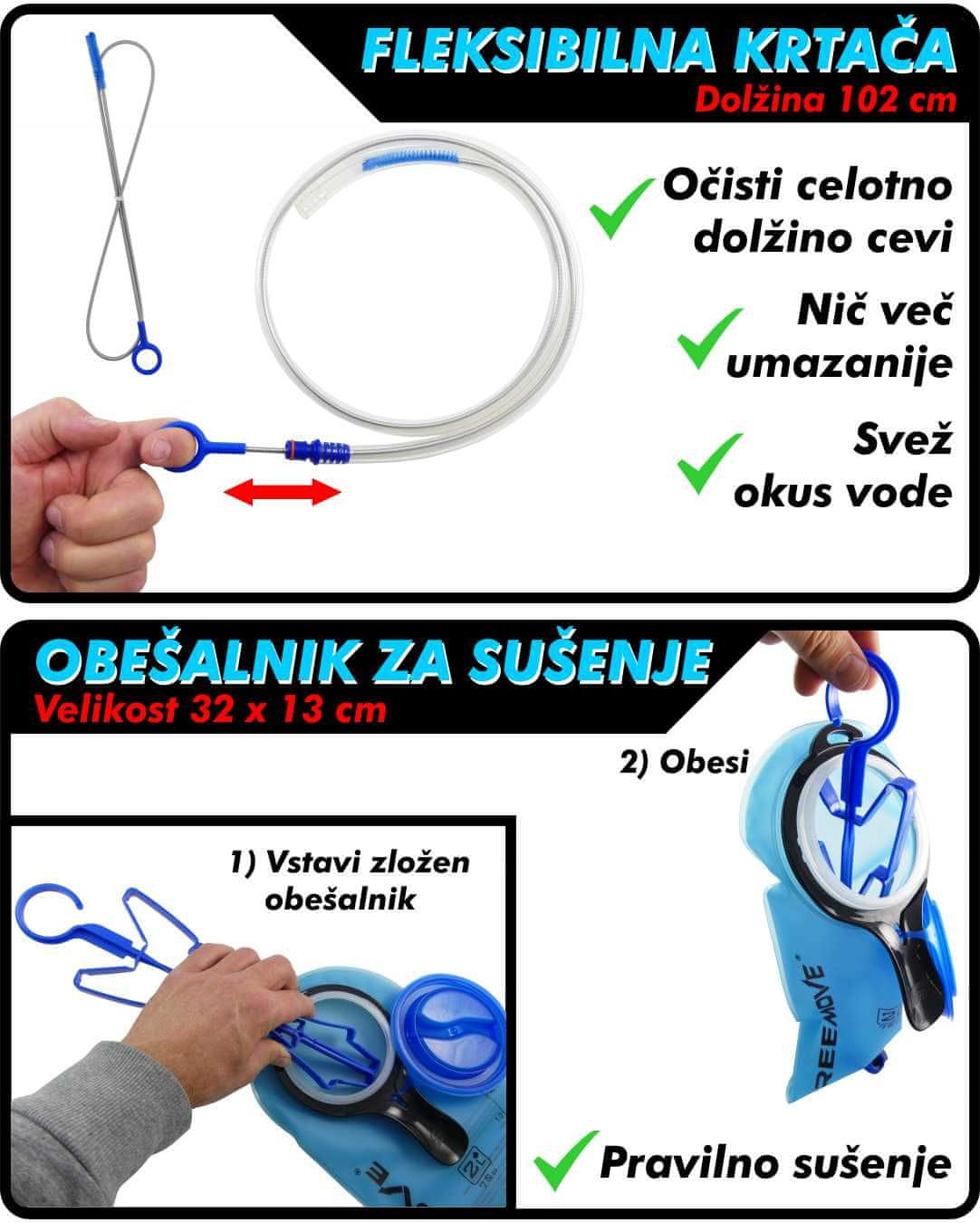 S pravilno uporabo čistilnih ščetk in rednim vzdrževanjem je mogoče podaljšati življenjsko dobo hidracijskega meha / rezervoarja ter zagotoviti varno in prijetno hidracijo med športnimi aktivnostmi na prostem.