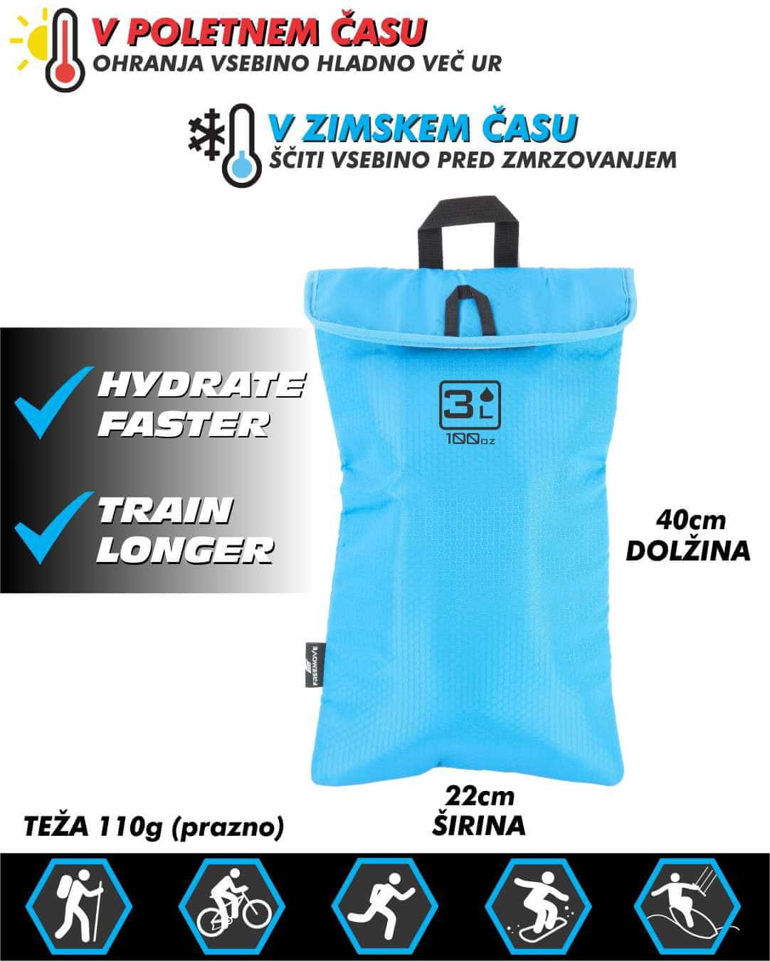 Uporaba termo torbe za hidracijski meh je izjemno koristna tako v vročih dneh kot tudi v zimskih razmerah.