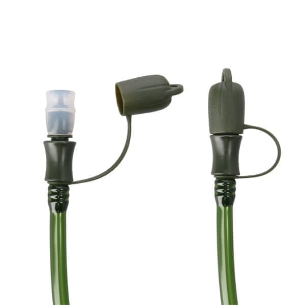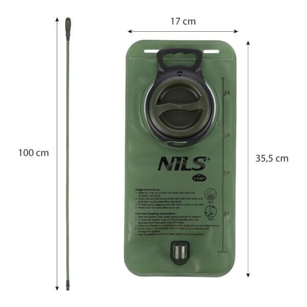 Hidracijski paket NC1720 je izdelan iz materiala PEVA, ki je okolju prijazen in okolju prijazen. Velika polnilna odprtina je opremljena s pokrovčkom s tesnilom, zato vrečka ne bo puščala. Pokrovček je povezan s plastičnim kalupom, ki je vrtljiv in ima na eni strani oblikovan ročaj za enostavno prenašanje napolnjenega hidrovaka, na nasprotni strani pa kavelj za obešanje v nahrbtnik. Glavna, polnilna odprtina je dovolj velika, da lahko v vrečko vstavite gobo, če jo morate očistiti. 100-centimetrska cev je zaključena s silikonskim ustnikom s pokrovčkom za največjo čistočo pri uporabi. Silikonski ustnik služi kot ventil in ga je treba za pitje ugrizniti, sicer voda ne bo tekla skozi njega.