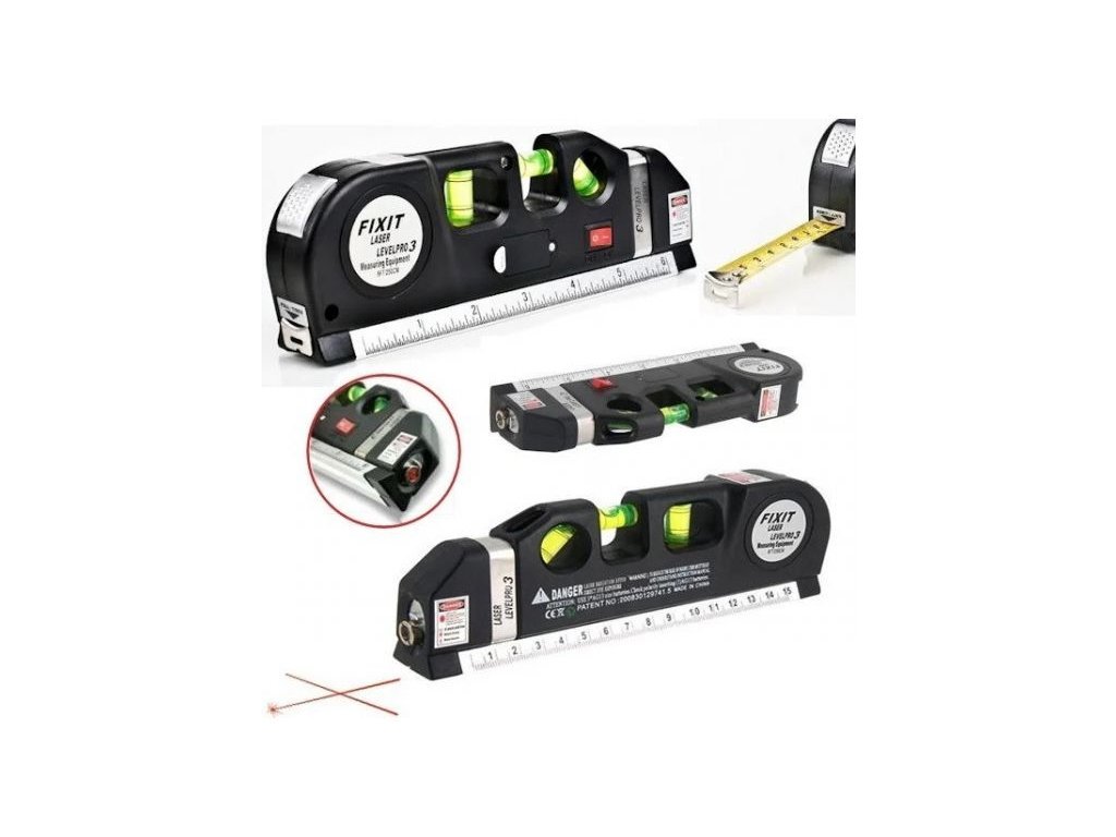 Laserska tehtnica, rešitev za merjenje ravnine in razdalje. Idealen za domača in obrtna dela vseh vrst. S to merilno napravo bo obešanje slike ali odlično sestavljene garderobne omare mačji kašelj. Naprava vključuje 250 cm merilni trak, navpično in vodoravno libelo ter laser za merjenje ravnine. Laser oddaja ozko in dobro vidno sled v obliki navpične ravne črte.