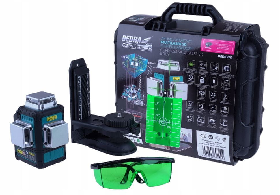 Dedra Sas+all PRO 18V aku. 3D 12 linijski zeleni gradbeni laserski nivelir OSRAM