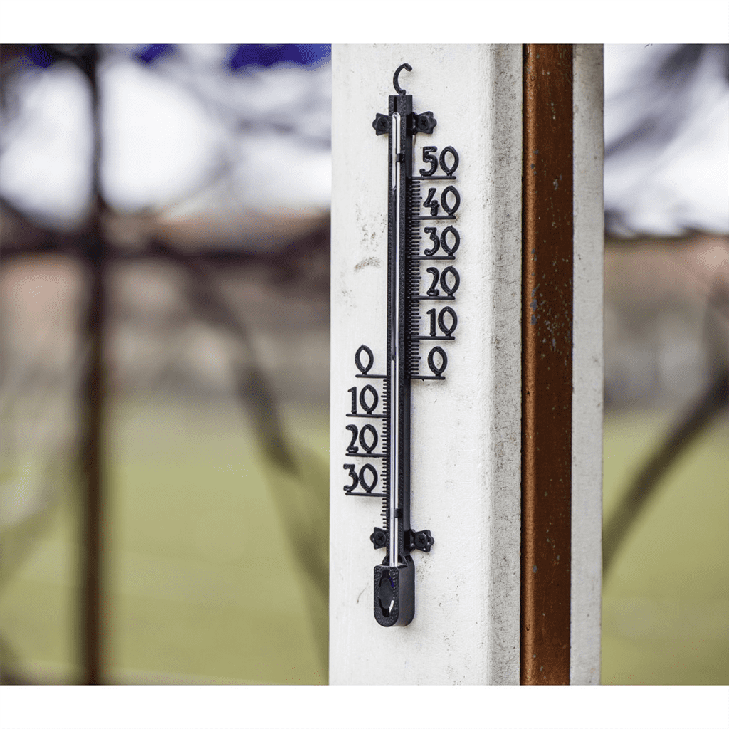 • analogni termometer za notranjo in zunanjo uporabo – vremensko odporna plastična oblika – luknja za obešanje na steno z žebljem itd. – merjenje v stopinjah Celzija – enostavno odčitavanje temperature …