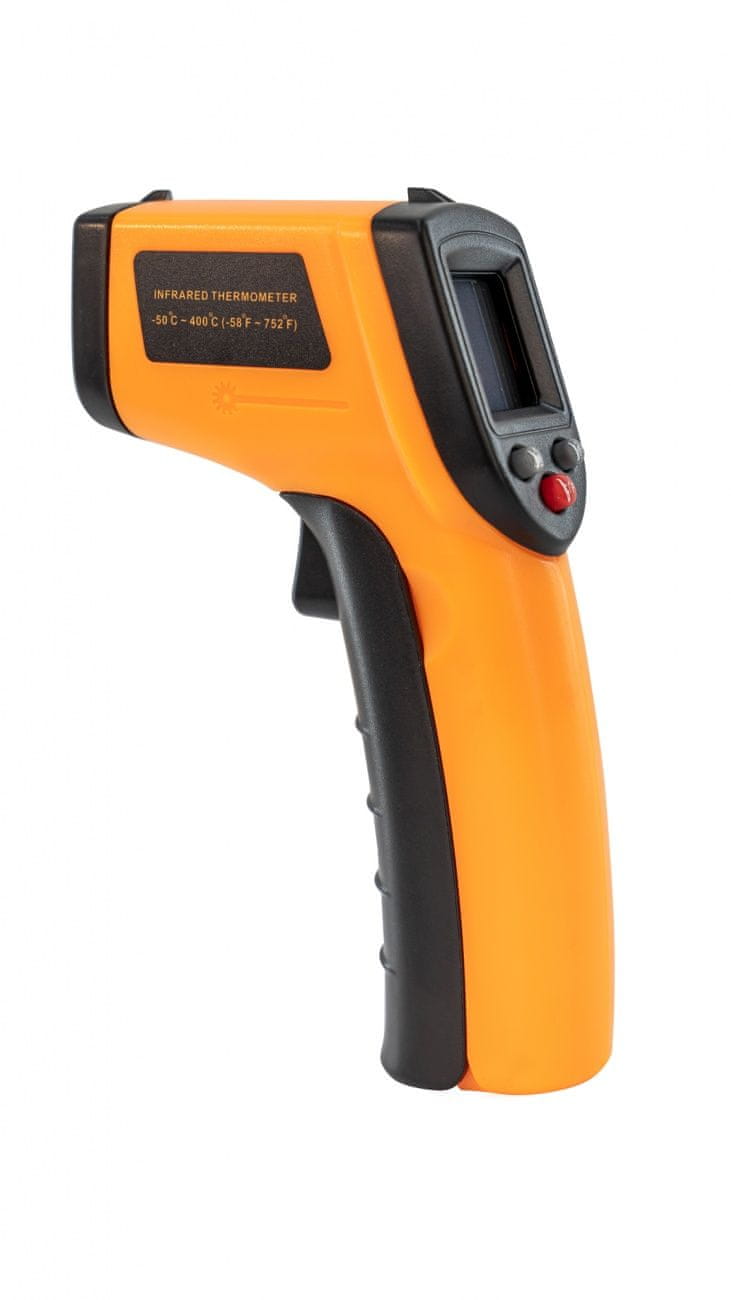OXE PT01 je infrardeči brezkontaktni industrijski termometer, ki se uporablja za merjenje površine predmetov. Nato se izmerjena površinska vrednost prikaže na LCD zaslonu. Izmerjeno temperaturno območje: –50°C ~ +400°C (-58°F ~ 752°F). Termometer je opremljen z laserjem za lažje usmerjanje skeniranega območja.