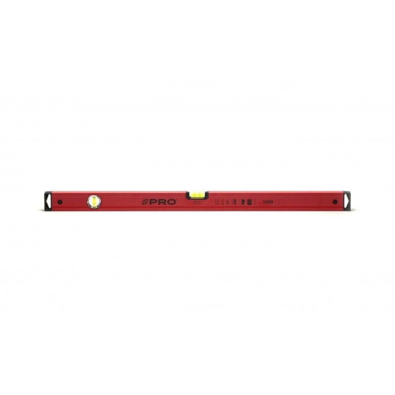 Tehnični podatki Proizvajalec: Pro Koda: 3–01–01-A1–100 Dolžinski nivelir s pobarvanim vodoravnim in navpičnim kazalcem 100 cm Profesionalni nivelir na pravokotnem profilu iz aluminijeve zlitine s povečano odpornostjo na temperaturne in vlažnostne spremembe. Površina profila je pobarvana rdeče. Trenutno je ena najbolj prepoznavnih vodnih merilnih naprav na poljskem trgu. Nivolum je opremljen z inovativno libelo EASY READ z natančnostjo merjenja 0,5 mm/m = 0,029°, ki nadomešča tradicionalno libelo v obliki kocke. Posebej oblikovana ukrivljena oblika viale omogoča odčitavanje položaja mehurčka ne glede na zorni kot ter tako omogoča hitro in enostavno odčitavanje. Poleg tega je bil dosežen učinek povečevalnega stekla, zaradi česar je mehurček večji kot v prejšnji viali. Novi steklenički in sami steklenički so odstranjeni ostri robovi, kar omogoča, da orodje zlahka očistite vseh nečistoč. ** Oglejte si fotografije